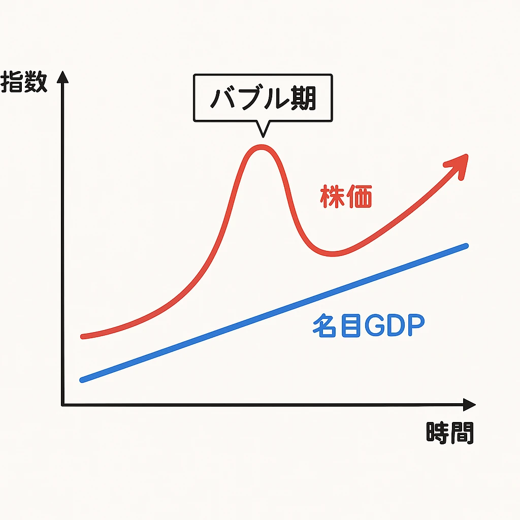 - バブル=実体が伴わず株価だけ上がる状態。