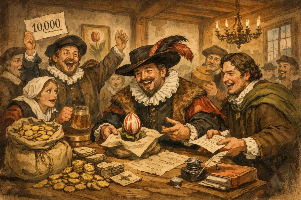 17世紀のオランダで、花の球根が家一軒分の値段で取引された。